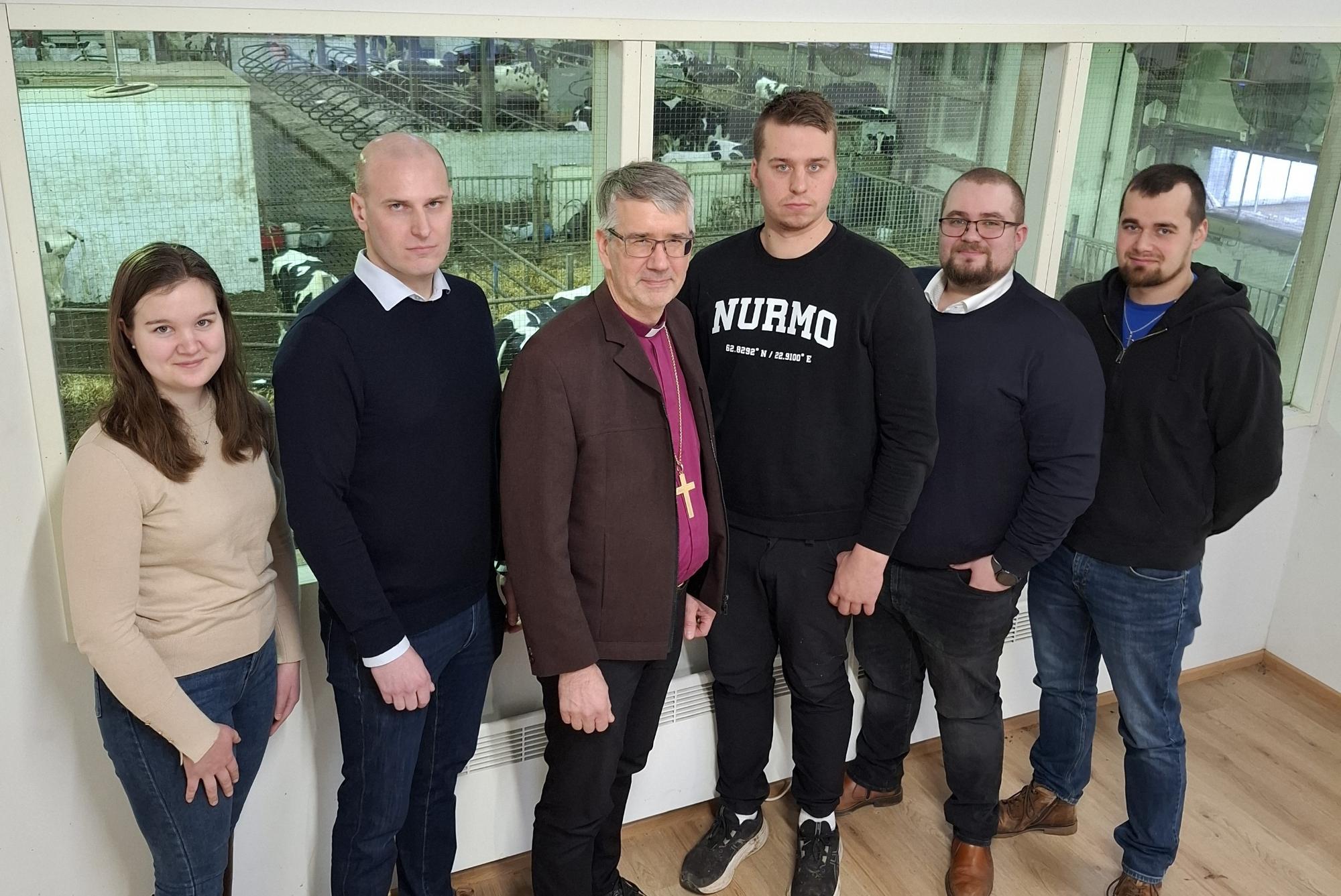 Maaseutunuorten valiokunta kutsui piispa Salomäen navettavierailulle.