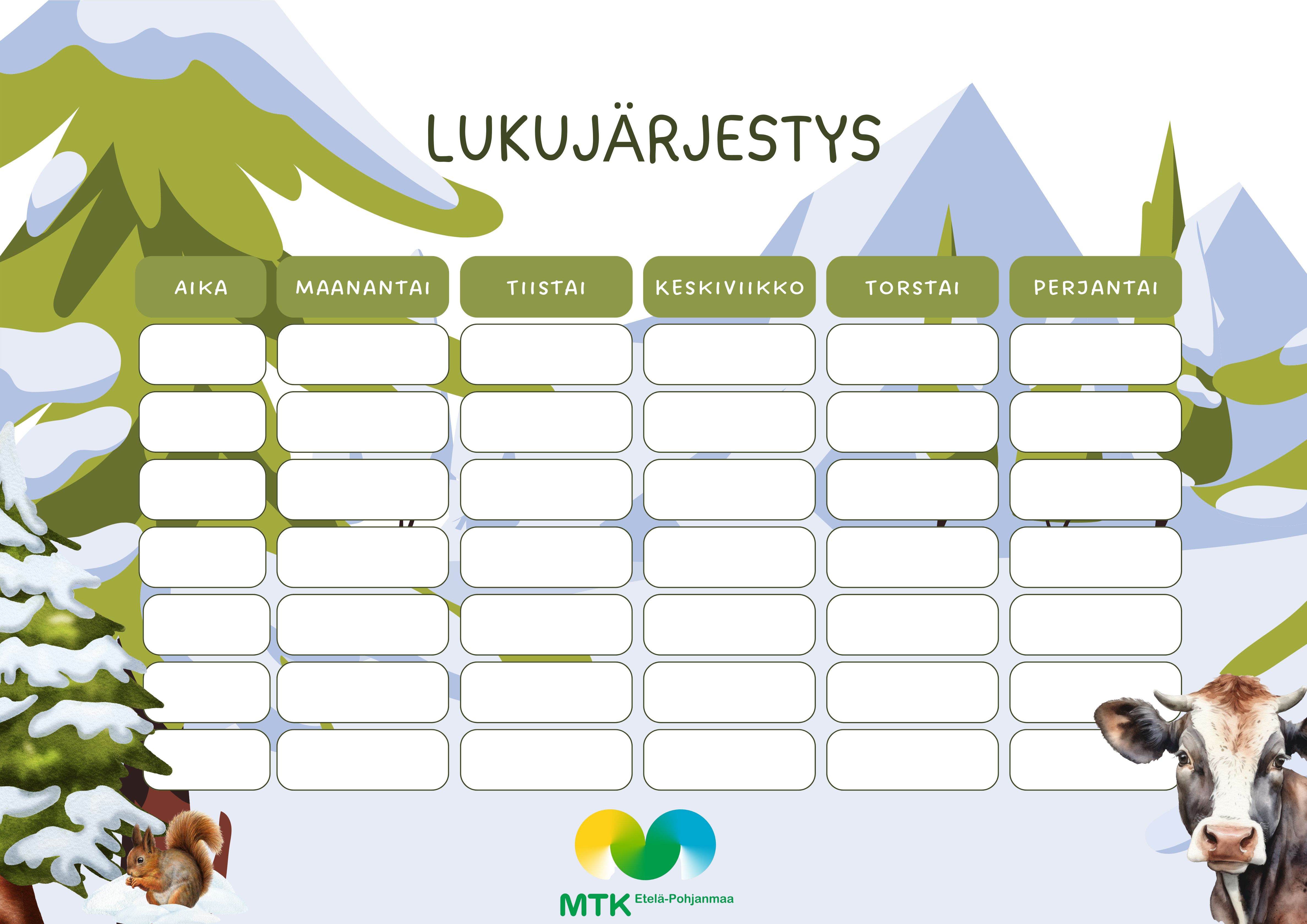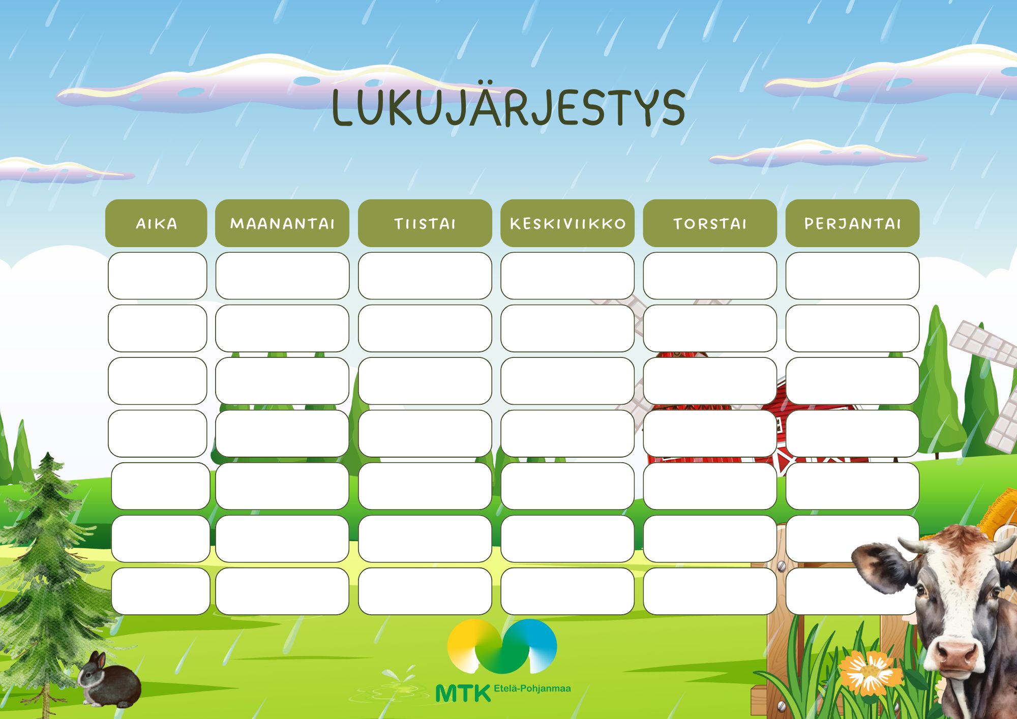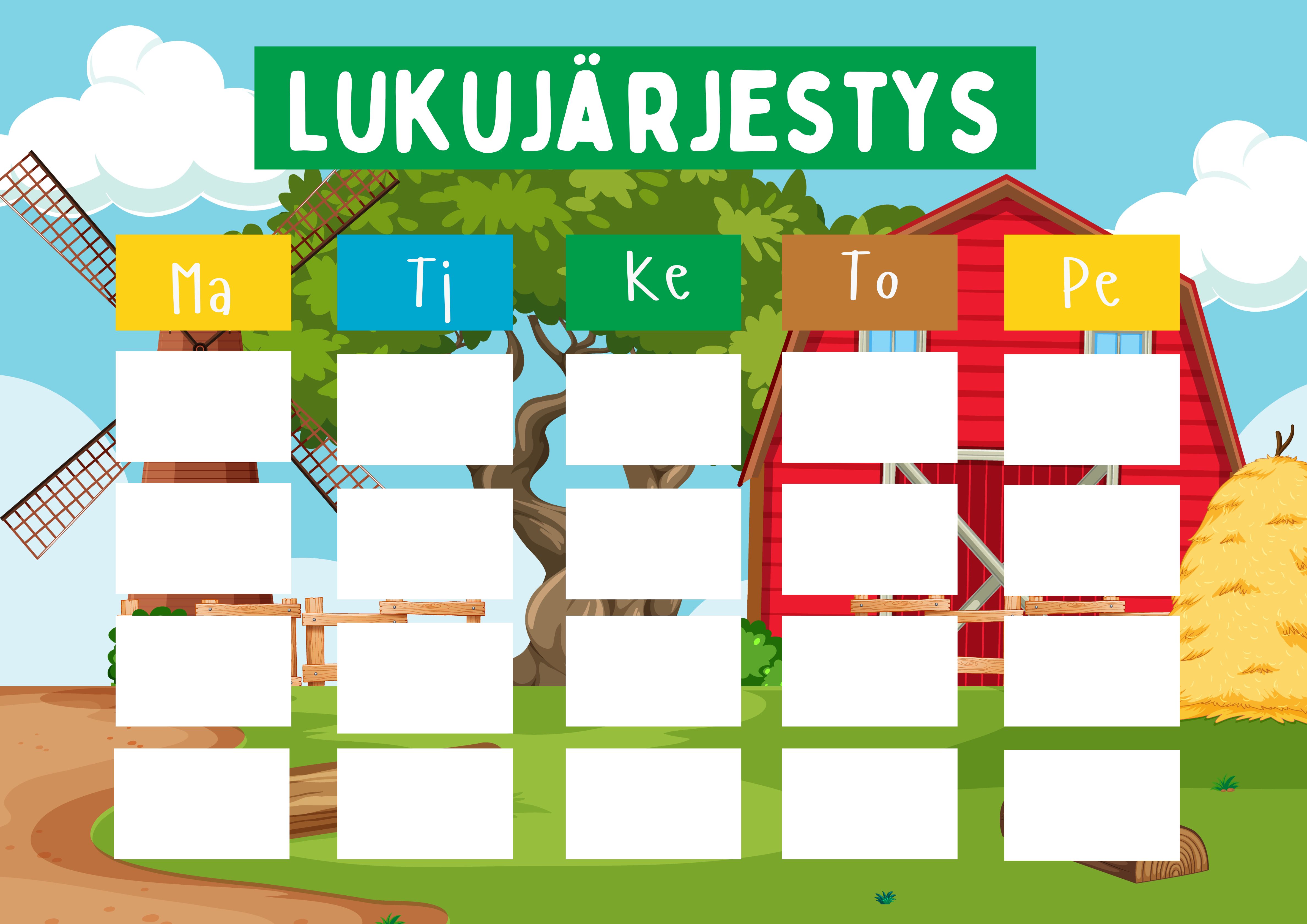Tulosta tästä tyylikkäät maaseututeemaiset lukujärjestykset! Vaihtoehtoina kaksi värillistä sekä yksi väritettävä lukujärjestys.